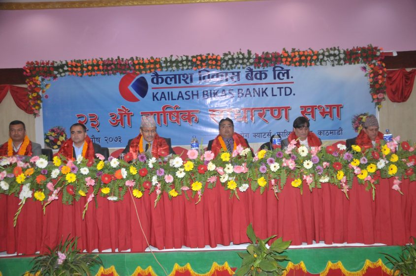 काठमाडौं । कैलाश विकास बैंक लिमिटेडको २३ औं वार्षिक साधारण सभाले २५ प्रतिशतका दरले बोनश शेयर वितरण गर्ने प्रस्ताव पारित गरेको छ ।