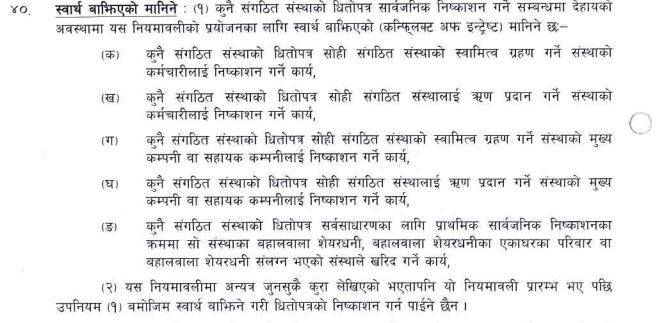 पूँजी बजारको नियामक निकाय धितोपत्र बोर्डले हालै कार्यान्वयनमा ल्याएको नियमावलीमा ऋण दिने संस्था, त्यसका कर्मचारी र संचयकर्तालाई सेयर दिन नपाइने व्यवस्था छ । बोर्डले नियमावली कार्यान्वयनमा ल्याउनु अघि नै सम्झौता भइसकेको विषय भएकोले पुरानै व्यवस्था अनुसार सेयर निष्कासनको गृहकार्य थालिएको सान्जेन जलविद्युत आयोजनाका प्रमुख कार्यकारी अधिकृत किरणकुमार श्रेष्ठले जानकारी दिए ।