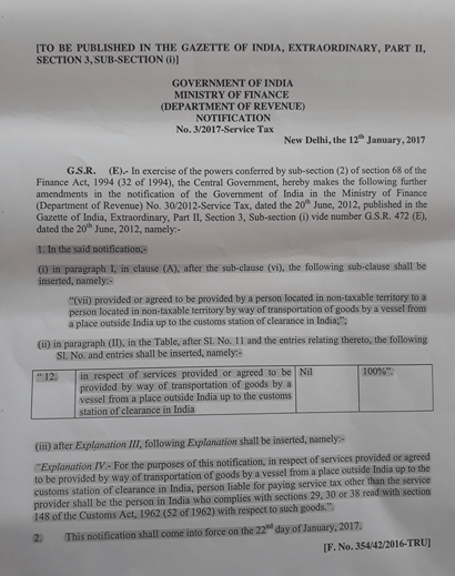 माघ ९ गते अर्थात जनवरी २२ देखि भारतले ढुवानी भाडामा पनि सर्भिस ट्याक्स उठाउन सुरु गरेको छ । भारत सरकारले गत जनवरी १२ मै यस्तो कर उठाउने निर्णय गरेको थियो ।