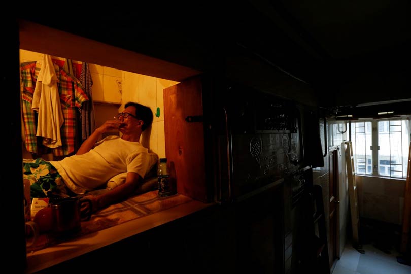 हङकङ सहरमा घर भाडा अत्याधिक महङ्गो भएका कारण मान्छेहरु ३५ बर्ग फिटको सानो ठाउँमा बस्न बाध्य छन् ।