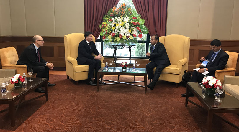 बैठकको सन्दर्भ पारी वाणिज्य मन्त्रीसंग अतिकम विकसित¸ भूपरिवेष्टित र साना तथा तटीय विकासोन्मुख मुलुकहरुका लागि संयुक्त राष्ट्र संघको उच्चायुक्तको कार्यालयका उपमहासचिव ज्ञानचन्द्र आचार्यले भेटवार्ता गरे ।
