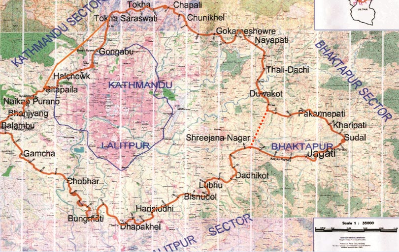 करिब ७२ किलोमिटर लम्बाइ रहने बाहिरी चक्रपथले काठमाडौंमा ३५ किलोमिटर, भक्तपुरमा २१ किलोमिटर र ललितपुरमा १६ किलोमिटर पर्ने गरी प्रस्ताव गरिएको बाहिरी चक्रपथका लागि करिब ७ हजार २ सय रोपनी जग्गा विकास गर्ने लक्ष्य राखिएको छ ।