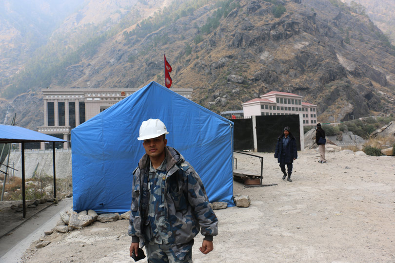 कार्यक्षेत्रमा हेल्मेट लगाएर खटिएका सशस्त्र प्रहरीका सहायक निरीक्षक सुदीप अधिकारीले भने ‘गत हप्ता ढुङ्गा खसेर हाम्रो सई साप (नायब निरीक्षक) मुकुन्द घिमिरे घाइते भएपछि १४ टाँका लगानुप¥यो । त्यही भएर हेल्मेट लगाएर खटिएका छौँ ।’