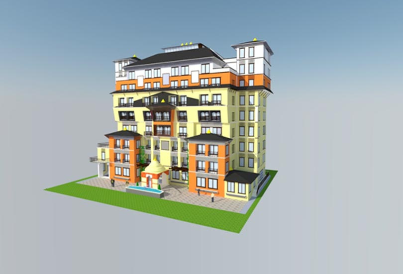 निर्माणधीन होटलहोटल साढे ६ रोपनी जमिनमा फैलिएको भएपनि भवन भने एउटा मात्रै छ । साढे ४ रोपनी आफ्नै र २ रोपनी जमिन भाडामा लिइएको हो ।