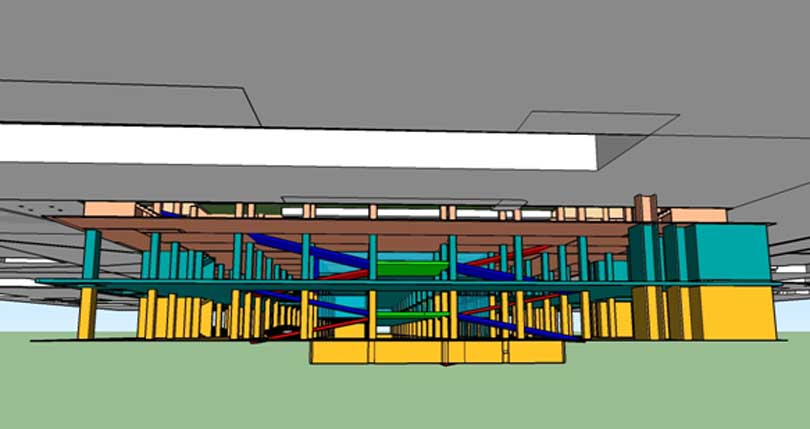 संरचनाको माथिल्लो भागमा १ सय ४५ वटा कार र २५ वटा मोटर साइकल पार्किङ गर्न मिल्छ भने तल्लो भागमा १ सय ६० वटा कार पार्किङ गर्न सकिन्छ ।