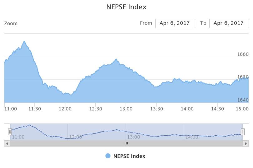 काठमाडौं । बिहिबार नेप्से परिसूचक ५.९८ अंकले घटेर १६५१.०४ अंक पुगेको छ । दिनभरी २५ अंक हाराहारीको उतारचढाव भएपनि अन्तमा नेप्से सामान्य रुपमा मात्र घट्यो । बिगत तीन हप्तामा झण्डै ३ सय ५० अंकले बढेको नेप्से बिगत २ दिन देखि भने स्थिर देखिएको छ ।