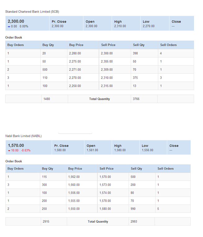 बिहिबार सबैभन्दा बढी एनसीसीको १२ करोड ९३ लाख रुपैंयाँको कारोबार भएको छ । दोस्रोमा सूर्य लाइफ इन्स्योरेन्सको ८ करोड ११ लाख, तेस्रोमा नेपाल बैंकको ७ करोड ८० लाख, चौंथोमा सनराइजको ६ करोड २० लाख र पाँचौंमा गुँरास लाइफ इन्स्योरेन्सको ६ करोड ८ लाख रुपैंयाँको कारोबार भएको छ ।