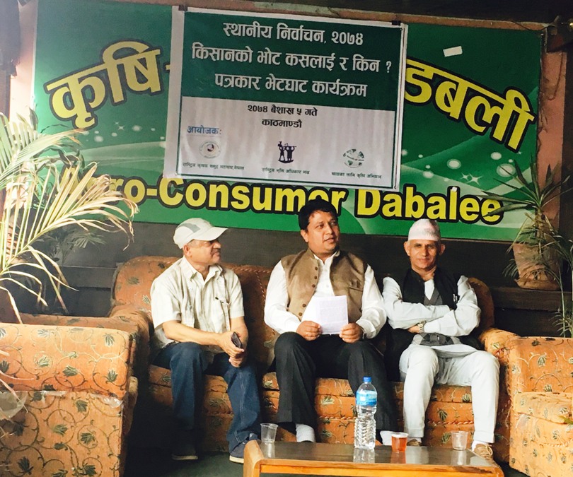 काठमाडौं । बैशाख ३१ गते हुने स्थानीय निर्वाचनमा किसानको मुद्दा उठाउने स्थानीय जनप्रतिनिधीलाई मात्रै भोट हाल्न कृषि बिज्ञले आग्रह गरेका छन् । राष्ट्रिय कृषक समूह महासंघ, राष्ट्रिय भूमिअधिकार मञ्च र खाद्यका लागि कृषि अभियान भन्ने संस्थाले संयुक्त रुपमा मंगलबार राजधानीमा आयोजना गरेको किसानको भोट कसलाई र किन भन्ने अन्तरक्रियामा यस्तो आग्रह गरिएको हो ।