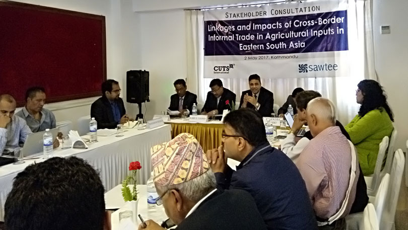 काठमाडौं । साउथ एसिया वाच अन ट्रेड, इकोनोमिक्स एण्ड इन्भायरोन्मेन्ट (सावती) तथा कट्स इन्टरनेशनलले संयुक्तरुपमा नेपाल भारत सिमामा हुने गरेका केहि कृषिजन्य सामाग्रीहरुको अनौपचारिक व्यापार सम्बन्धमा गरिएको एक अध्ययनको निष्कर्षको बारेमा विज्ञ तथा सरोकारवालाहरुसँग छलफल गरेको छ ।