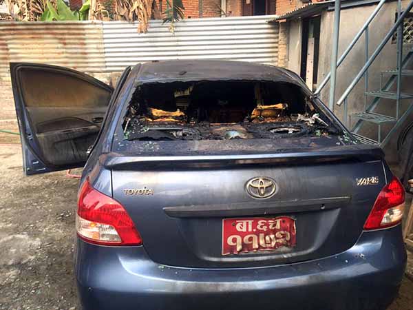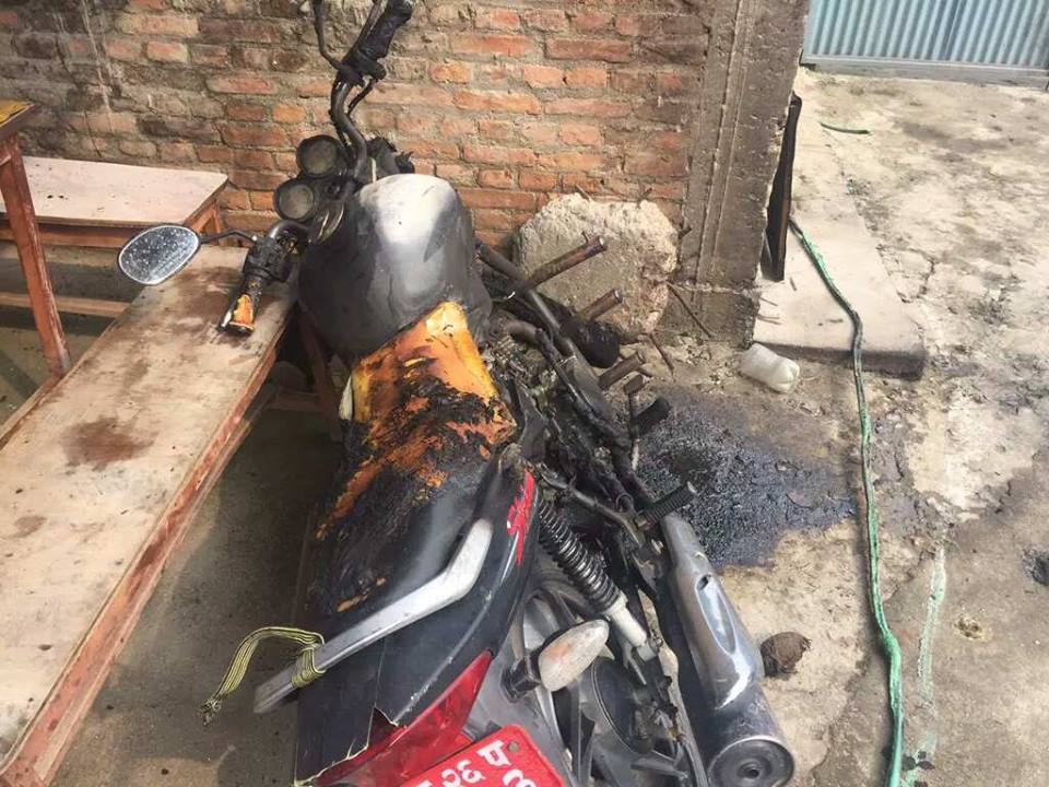 पेट्रोल बमबाट पार्किङ गरेर राखिएका टोयाटो कोरोला कार, होण्डा साइन मोटरसाइकल र अफिस कोठा, फ्याक्स् मेसिन जलेर नस्ट भएको महतले बताए ।