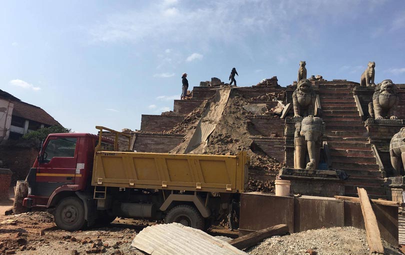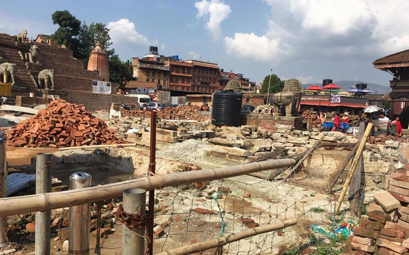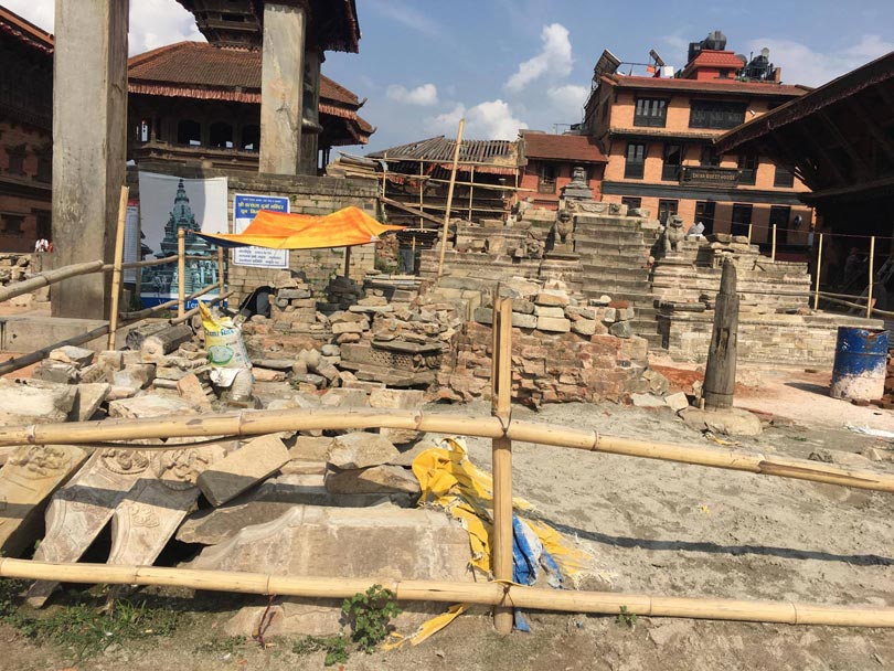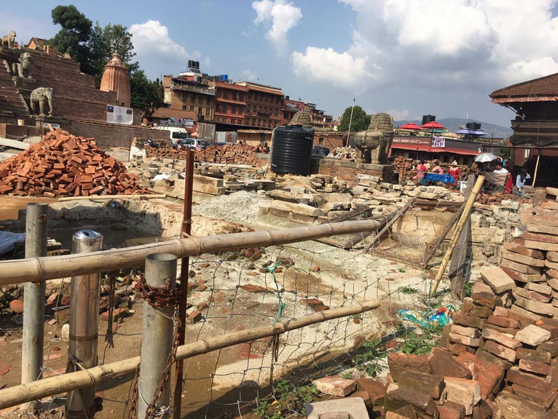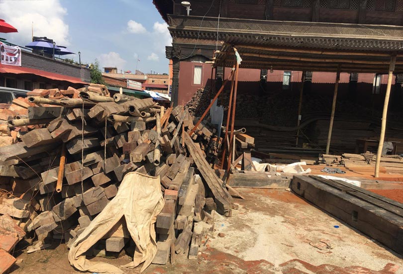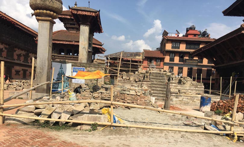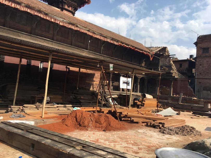 तर भक्तपूर दरबार स्क्वायरमा रहेका पूरातात्विक महत्वका सम्पदा पुननिर्माणले भने गति लिएको छ । भक्तपूर दरबार स्क्वायरको पुननिर्माण हुदै गरेको थप तस्बीर यस्ता छन् ।