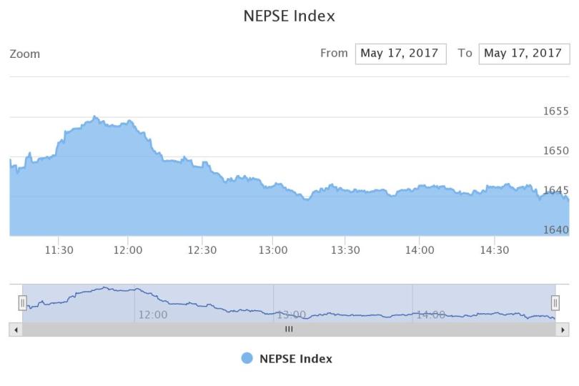 बुधबार नेप्से ४.९८ अंकले घटेर १६४४.२६ अंकमा आइपुगेको छ । मंगलबार नेप्से दोहोरो अंकले घटेको थियो भने कारोबार रकम पनि ५० करोड रुपैंयाँमा सिमित भएको थियो । बुधबार कारोबार रकममा थोरै सुधार आएर ६२ करोड रुपैंयाँको कारोबार भएको छ ।