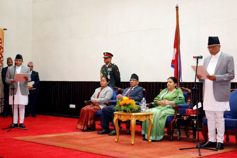 शीतलनिवासस्थित राष्ट्रपति कार्यालयमा आज आयोजना गरेको विशेष समारोहबीच कार्यवाहक प्रधानन्यायाधीश पराजुलीले बस्न्यात र शर्मालाई पद तथा गोपनीयताको शपथग्रहण गराएका हुन् ।