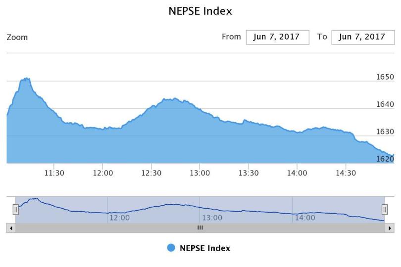 काठमाडौं । नयाँ प्रधानमन्त्री नियुक्त भएको दिन ३५ अंकले बढेको नेप्से नयाँ अर्थमन्त्री नियुक्त भएको दिन भने १४.२४ अंकले घटेर १६२३.१३ अंकमा आइपुगेको छ । कारोबारको शुरुवाती समयमा दोहोरो अंकले बढेको नेप्से बिचमा केही बढ्ने प्रयास गरे पनि अन्तत दोहोरो अंकले नै घट्यो ।