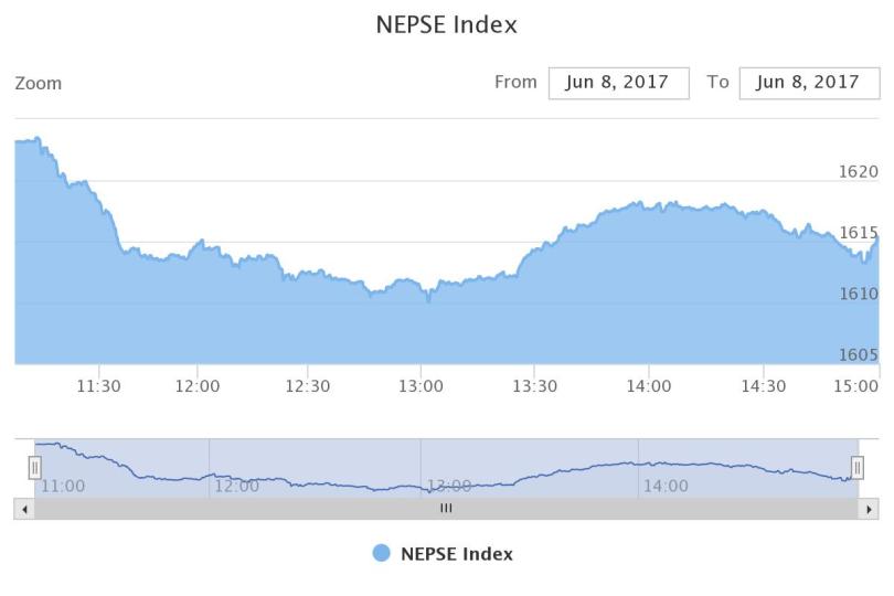 बिहिबार नेप्से परिसूचक ७.९४ अंकले घटेर १६१५.१९ अंकमा आइपुगेको छ । १४९ कम्पनीको ८ लाख ४ हजार कित्ता सयर किनबेच हुँदा ४८ करोड ९७ लाख रुपैंयाँको कारोबार भएको छ ।