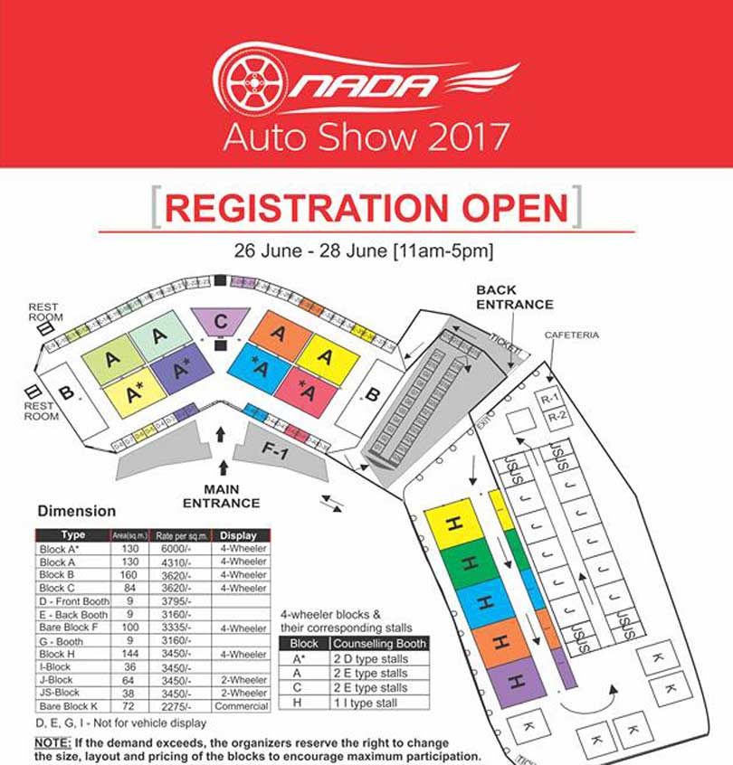 काठमाडौं । नाडा अटोमोबाइल्स एसोसिएसन अफ नेपालको आयोजनामा आगामी भदौ १३ देखि १८ गतेसम्म नाडा अटो शो हुने भएको छ । अटो शोको लागि रजिष्ट्रेसन समेत खुल्ला गरिएको छ । अटोमोबाइल व्यवसायीहरुले आफ्नो स्टल राख्नका लागि आगामी असार १२ देखि १४ सम्म सम्पर्क गर्नु पर्ने व्यवस्था गरिएको छ ।