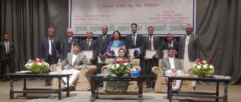 यस्तै महालेखाका ६ जना कर्मचारीलाई उत्कृष्ट कर्मचारी पुरस्कार प्रदान गरिएको थियो । यस्तो पुरस्कारबाट पुरस्कृत हुनेहरुमा महालेखा परीक्षक कार्यालयका निर्देशक शिवराम गुरुङ तथा लेखापरीक्षण अधिकारीहरु सबिना चित्रकार, कुमार आचार्य, शिवहरि पोखरेल र मधुसुदन महत छन् । यस्तै महालेखाको हलुका सबारी चालक सूर्यबहादुर तामाङ पनि पुरस्कृत भएका छन् । पुरस्कृत कर्मचारीहरुलाई जनही ५ हजार रुपैयाँ नगद, प्रमाणपत्र र मायाको चिनो प्रदान गरिएको छ ।