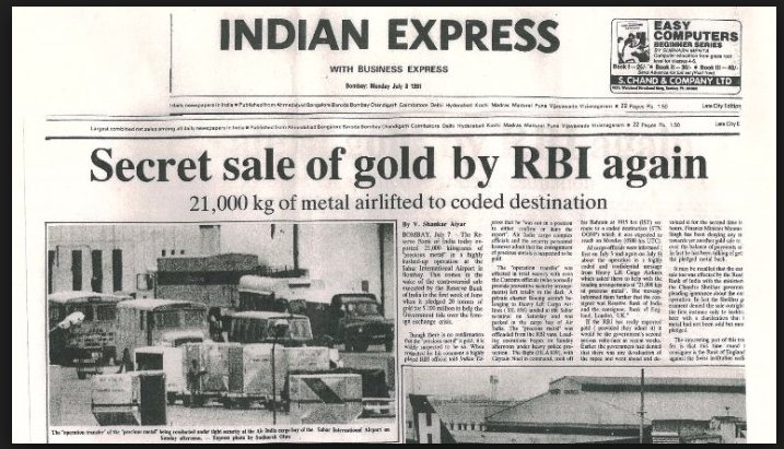 मुम्बई । सन् १९८० देखि ९० दशकसम्म भारतको विदेशी मुद्रा सञ्चिति कम भएको थियो । जसको कारण भारतले आफ्नो सुन धरौटी राखेर अमेरिकी डलर खरिद गर्नु परेको थियो ।