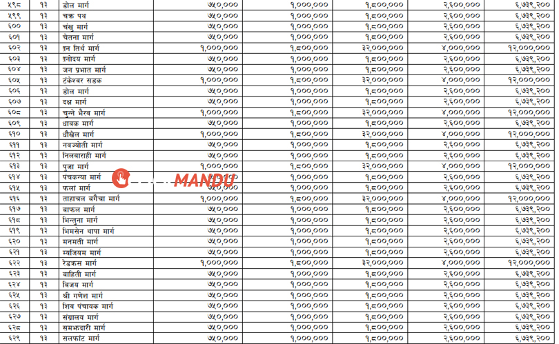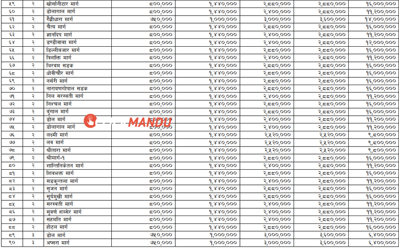 त्यसैगरी, न्यूरोड, असन इन्द्रचोक, त्रिपुरेश्वरलगायतका ठाउँहरुमा पनि महानगरले बजारमूल्य भन्दा अत्यन्तै सस्तो मूल्यमा जग्गाको मूल्य तोकेको छ ।