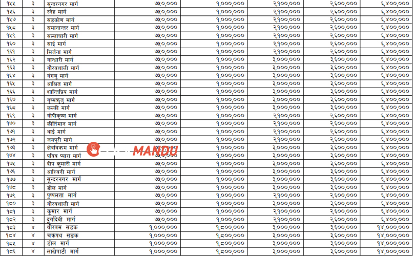 महानगरले सडक तथा गल्लीलाई आधार बनाएर महानगरले महानगरभित्रका १३ सय ९७ स्थानमा रोपनीका हिसाबले जग्गाको मूल्य तोकेको छ ।