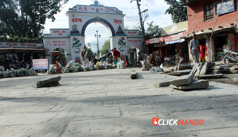 नेवारी समुदायको संस्कृतिलाई बचाइराख्न यसरी पिच हटाएर ढुङ्गा विच्छाइएको स्थानीयवासीको भनाई रहेको छ ।