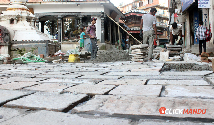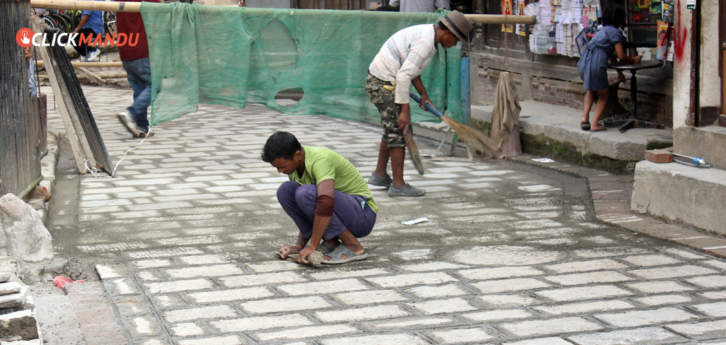 ललितपुरको पाटन क्षेत्रमा भएको सडकलाई भत्काएर ढुङ्गा विच्छाउने काम धमाधम भइरहेको छ ।