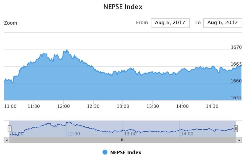 काठमाडौं । साताको कारोबारको पहिलो दिन नेप्से परिसूचक ४.४७ अंकले बढेर १६६५.०५ अंकमा पुगेको छ । १५९ कम्पनीका ३२ लाख ९३ हजार कित्ता सेयर किनबेच हुँदा १ अर्ब १ करोड रुपैंयाँको कारोबार भएको छ ।