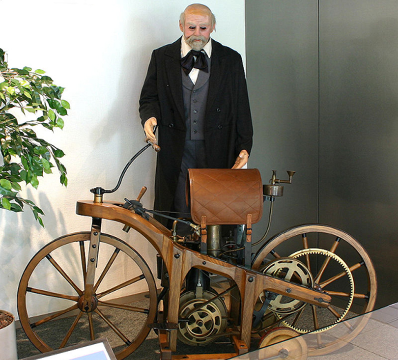 पहिलो पटक मोटरसाइकलको डिजाइन जर्मनीको गोटलिब डेमलर र बिल्हेम मेब्याच ले १८८५ मा गरेका थिए । उनिहरुले डिजाइन गरेका साधन नै पहिलो पेट्रोलियम पदार्थले चल्ने मोटरसाइकल थियो ।