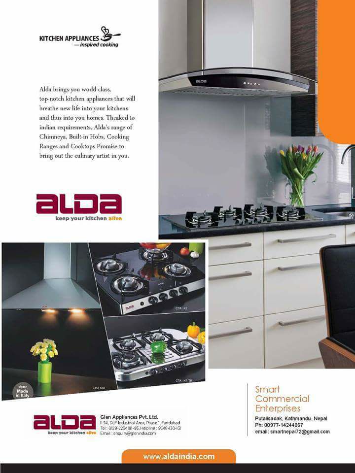 काठमाडौ पुतलीसडकमा रहेको स्मार्ट कमर्सियल इन्टरप्राइजेजले विश्व प्रख्यात आल्दा कम्पनिका चिम्नी र चुलोलगायतका किचन एपलाइन्सेस नेपाली बजारमा विक्रि गर्दै आइरहेको छ ।