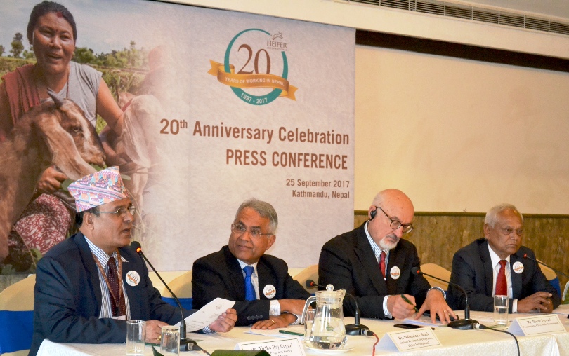 काठमाडौं । पशुपालनको क्षेत्रमा काम गर्दै गरेको अन्तर्राष्ट्रिय गैर सरकारी संस्था हेफर इन्टरनेशनलले नेपालमा काम गरेको २० वर्ष पूरा भएको छ । २० औं बार्षिकोत्सवको अवसरमा आयोजित पत्रकार सम्मेलनमा हेफर इन्टरनेशनलका प्रमुख कार्यकारी अधिकृत पाईरे फरारीले नेपालमा संस्थाले हासिल गरेको उपलब्धी विश्वभरका लागि प्रशिक्षण केन्द्रको रुपमा विकास भएको बताए । सिईओ फरारीले नेपालबाट विश्वका धेरै देशले सिक्न सक्ने बताए ।