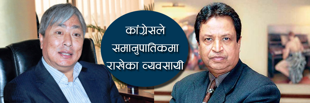 त्यसैगरी, नेपाल उद्योग वाणिज्य महासंघका पूर्वअध्यक्ष आनन्दराज मुल्मी, व्यवसायी अनिल रुङगटा, व्यवसायी दिब्यमणि राजभण्डारी र लिटिल एञ्जल कलेजका प्रमुख उमेश श्रेष्ठ लगायतका व्यवसायीहरु पनि कांग्रेसको समनुपातिक सांसदको सूचिमा छन् ।