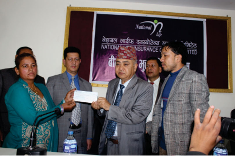 काठमाडौं । नेशनल लाइफ इन्स्योरेन्सले बिमित परिवारलाई ३८ लाख ५ हजार रुपैयाँको मृत्यु दाबी भुक्तानी गरेको छ । इन्स्योरेन्सले मंसिर १५ गते तुलसीपुर उपमहानगरपालिका–५ का रत्नबहादुर वलीको धर्मपत्नी कौशिला वलीलाई मृत्यु दाबी स्वरुप चेक हस्तान्तरण गरेको हो ।
