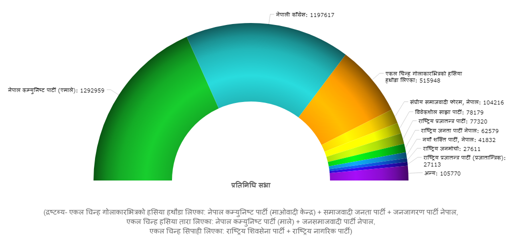 पहिलो स्थानमा रहेको नेकपा एमालेले १२ लाख ९२ हजार मत ल्याउला नेपाली काँग्रेसले ११ लाख ९७ हजार मत पाएको छ । त्यस्तै तेस्रो स्थानमा रहेको माओवादी केन्द्रले ५ लाख १५ हजार मत ल्याएको छ ।