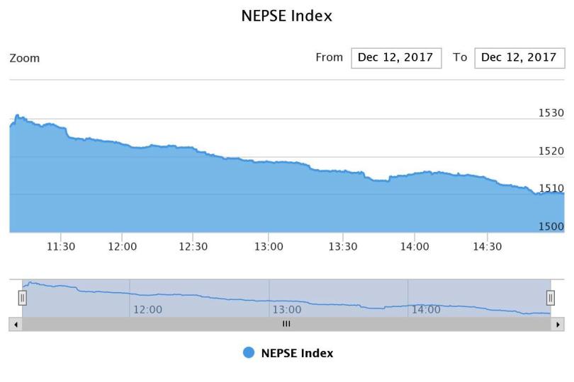 काठमाडौं । नेपाल स्टक एक्सेन्ज (नेप्से) परिसुचक १७.५४ अंकले घटेको छ । मंगलबार नेप्से १५१०.२१ अंकमा अडेको छ ।