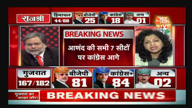 १८२ बिधान सभाको लागि भएको निर्वाचनमा सुरुवाति आंकडा अनुसार भारतीय जनता पार्टीले ८१ स्थानमा अग्रता कायम गरेको छ भने, कांग्रेसल ८४ स्थानमा अग्रता लिएको भारतीय संचार माध्यमले जनाएका छन् ।