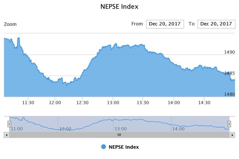 काठमाडौं । नेपाल स्टक एक्सेन्ज (नेप्से) परिसुचक ९.२९ अंकले घटेको छ । बुधबार नेप्से १४८४.४७ अंकमा अडेको छ ।