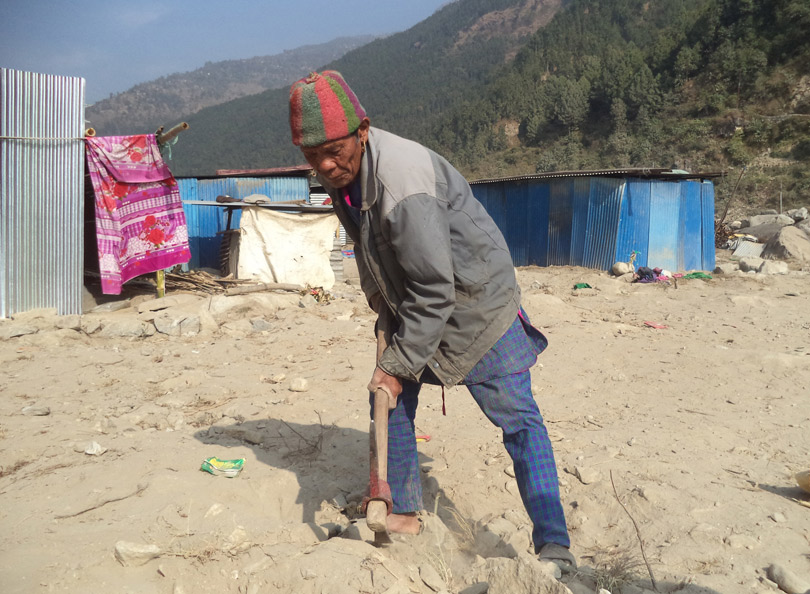 “एक्लैले आक्कलझुक्कल पाइने ज्यालादारीको काम गरेर परिवारका पाँच सदस्यको आवश्यकता पूर्ति गर्नुपर्छ, परिवारका अन्य सदस्यको रोजगारी नहुँदा अप्ठ्यारो छ, गाउँमा खेती गरेरै भए पनि वर्ष दिन खान पुग्थ्यो, यहाँको जीवन शरणार्थीको झैँ बनेको छ”, उनको दुःखेसो छ ।