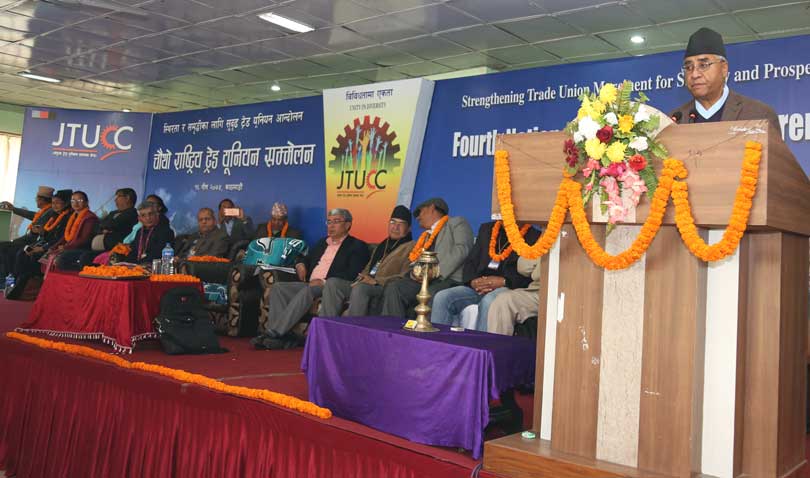 संयुक्त ट्रेड युनियन समन्वय केन्द्रको आज यहाँ ‘चौथो राष्ट्रिय ट्रेड युनियन सम्मेलन’को उद्घाटन गर्दै प्रधानमन्त्री देउवाले अहिले सरकारले तोकेको मजदूरको न्यूनतम ज्याला नौ हजार ७०० धेरै कम भएको टिप्पणी गर्दै भने ,’मजदूरले पाउने मासिक रकमबाट कम्तीमा पनि उसको सानो परिवार पाल्नसक्ने हुनुपर्छ।’