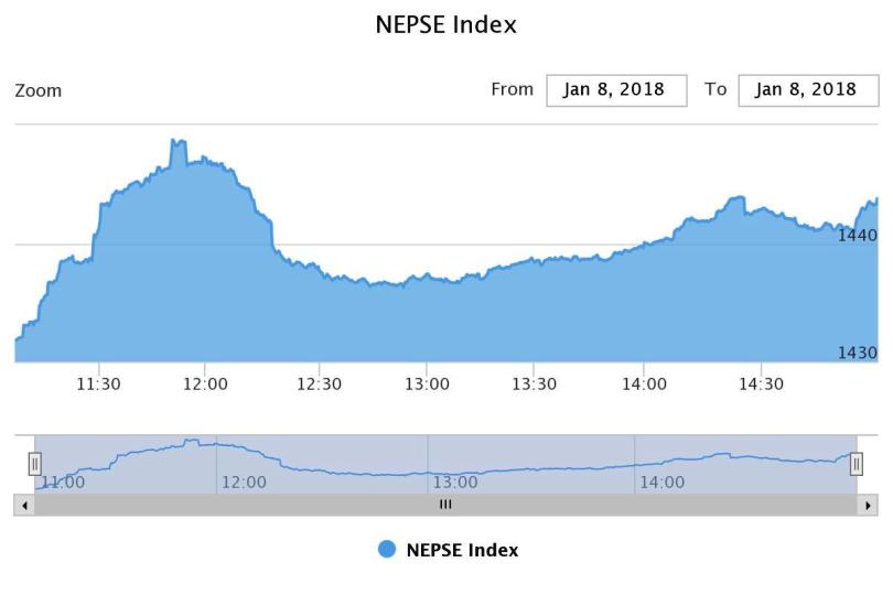 काठमाडौं । नेपाल स्टक एक्सेन्ज (नेप्से) परिसुचक १२ अंकले बढेको छ । सोमबार नेप्से १४४३.८० विन्दुमा अडेको छ ।