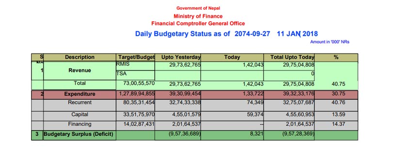 सरकारको आम्दानीभन्दा खर्च बढी भएका कारण अहिले नै सरकार नोक्सानीमा चलिरहेको छ । सरकारको आम्दानी र खर्चको विवरण राख्ने महालेखा नियन्त्रकको कार्यालयका अनुसार गत पुस २७ गतेसम्ममा सरकार ९५ अर्ब ७२ करोड ८३ लाख रुपैयाँ नोक्सानीमा छ । एकै पटक ठूलो संख्यामा कर्मचारी अवकाशमा गए त्यसको लागि थप रकम ब्यवस्था गर्न सक्ने अबस्थामा अर्थमन्त्रालय छैन ।