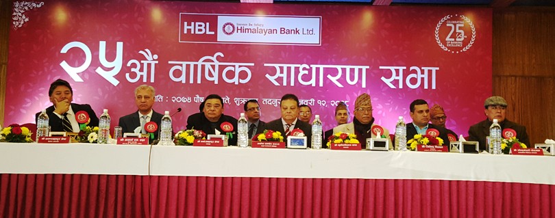 काठमाडौं । हिमालयन बैंकले २६ प्रतिशत बनोनस सेयर दिने भएको छ । बैंकको २५ औं वार्षिक साधारण सभाले २५ प्रतिशत बोनस सेयर र १.३१ प्रतिशत नगद लाभांश दिने प्रस्ताव पारित गरेको हो ।