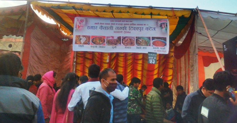 हरेक स्टलमा थारु समुदायका प्रशिद्ध पकवानहरु प्रर्दशनी तथा विक्रीका लागि राखिएको छ । प्रदर्शनीमा बगिया, सिधरा, सितुवा, कौखरा, सानो माछा, लाई, घोङडी, परेवाको मासु र तेलपौर रोटीलगायतका खानाका सामाग्रीहरु बनाइ राखिएको थियो ।