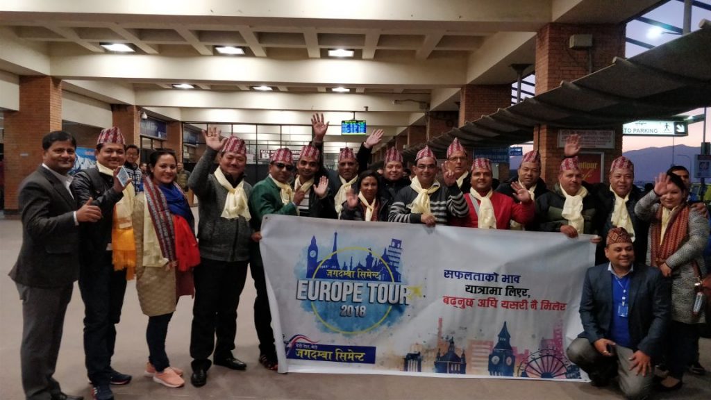 काठमाडौं । जगदम्बा सिमेन्टले यस आर्थिक वर्ष २०७४/७५ मा ‘जगदम्बा शुभ यात्रा’ कार्यक्रम अन्तर्गत आफ्ना डिलर वर्गलाई मनोवैज्ञानिक रुपमै उत्प्रेरित गर्ने उद्धेश्यले विश्वका अति रमणिय स्थलहरु भ्रमण गर्न पठाएको छ ।