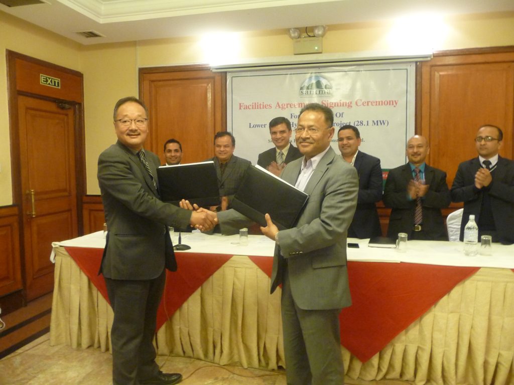 काठमाडौं । श्वेत गंगा हाइड्रोपावर एण्ड कन्स्ट्रक्सनले रामेछाप र ओखलढुंगा जिल्लाको लिखु खोलामा निर्माण गर्ने २८.१ मेगावाटको तल्लो लिखु जलविद्युत आयोजनाको लागि लक्ष्मी बैंकको अगुवाईमा जम्मा ५ वटा वाणिज्य बैंक तथा वित्तीय संस्थाहरुले सहवित्तीयकरण अन्तर्गत कर्जा लगानी गर्ने गरी आज कर्जा सुविधा सम्झौतामा हस्ताक्षर गरेको छ ।