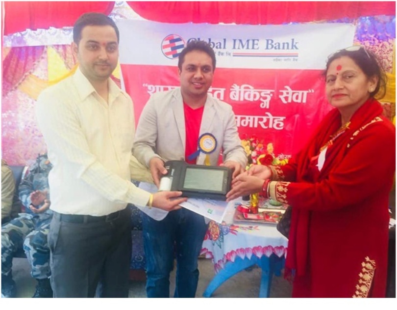 मोरङ्ग जिल्लाको कुशल चोकमा खोलिएको शाखारहित बैंकिङ्ग सेवाको पथरी शनिश्चरे नरपालिकाका उप–मेयर श्रीमती यमुना बिष्ट तथा ग्लोबल आइएमई बैंक लिमिटेडका रेमिट्यान्स प्रमुख रविन्द्र ढकालले संयुक्त रुपमा समुद्घाटन गरे ।