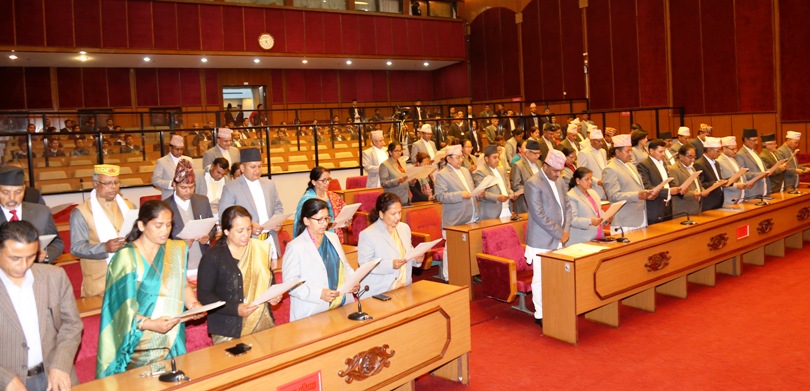 नेपालको संविधानको धारा ८४ मा प्रतिनिधिसभा गठनबारे व्यवस्था छ । प्रतिनिधिसभामा प्रत्यक्ष निर्वाचित १६५ र समानुपातिकतर्फ ११० गरी २७५ सदस्य छन् । संसदको पहिलो बैठकमा सहभागी हुनु अघि उनीहरुले आज शपथ लिएका हुन् ।