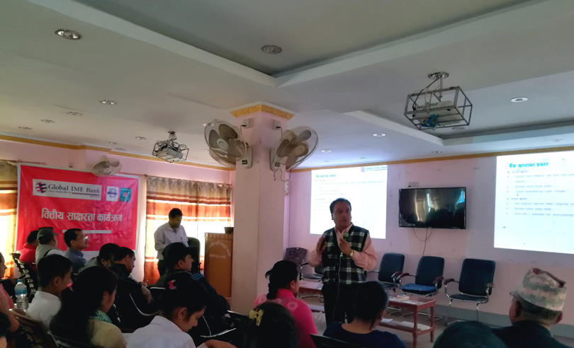 उक्त कार्यक्रममा ग्लोबल आइएमई बैंकका “तालिम तथा बैंकिङ्ग बिज्ञ” पुर्णमान नापितले मन्थली क्षेत्रमा बसोबास गर्ने विद्यार्थी, व्यापारी, सरकारी तथा गैह्र सरकारी कर्मचारी, आमा समूह तथा अन्य स्थानीय बासीहरुलाई बैंक तथा वित्तीयको बारेमा जानकारी गराएका थिए ।