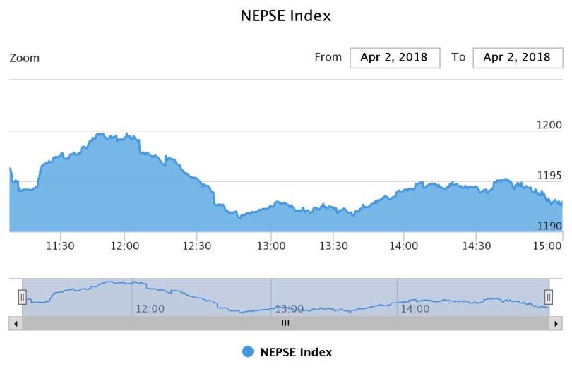 काठमाडौं । सोमबार नेपाल स्टक एक्सचेन्ज (नेप्से) परिसूचक ३.२८ अंकले घटेको छ । नेप्से ०.२७ प्रतिशतले घट्दा ११९२ .९६ विन्दुमा पुगेको हो ।
