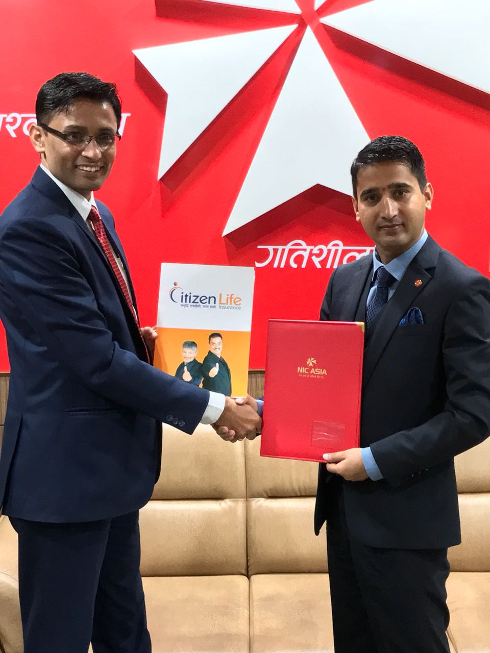 काठमाण्डौ । एनआईसी एशिया बैंक लिमिटेडले सिटिजन लाईफ इन्स्योरेन्स कम्पनी लिमिटेडसँग बैंकास्योरेन्स सम्झौता गरेको छ ।