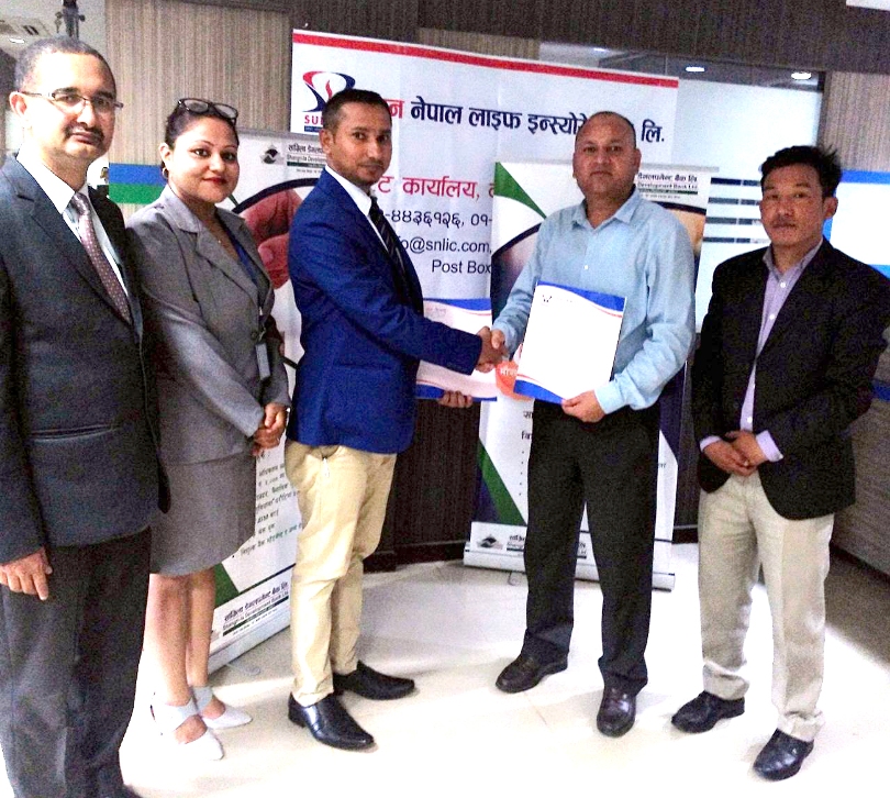 सांग्रिला डेभलपमेन्ट बैंक र सन नेपाललाईफबीच बैंकास्योरेन्स सुरेन्स सम्झौता